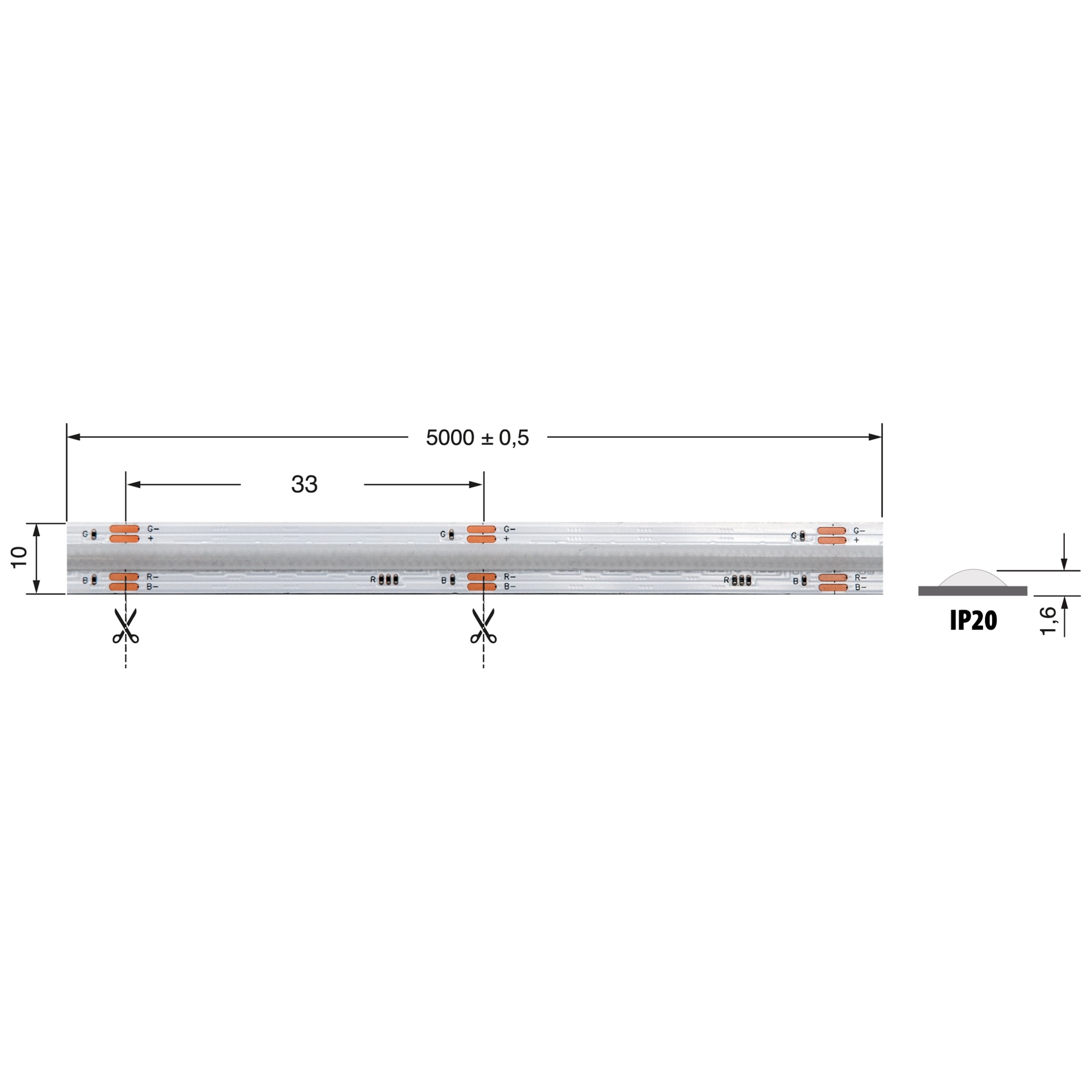Scopri la versatilità e l'innovazione della striscia LED COB RGB da 15W/m, progettata per un'alimentazione a 12V e con un grado di protezione IP20. Questa striscia LED è ideale per creare atmosfere uniche e personalizzate in qualsiasi ambiente, grazie alla sua capacità di emettere una gamma di colori vibranti. Realizzata con materiali di alta qualità, offre un'ottima efficienza energetica e un'illuminazione uniforme, perfetta per applicazioni decorative e di illuminazione d'accento. La sua flessibilità consente di installarla facilmente in spazi ristretti o di adattarla a forme e superfici diverse. Con una potenza di 15W per metro, questa striscia LED è una scelta eccellente per chi cerca soluzioni di illuminazione moderne e funzionali.