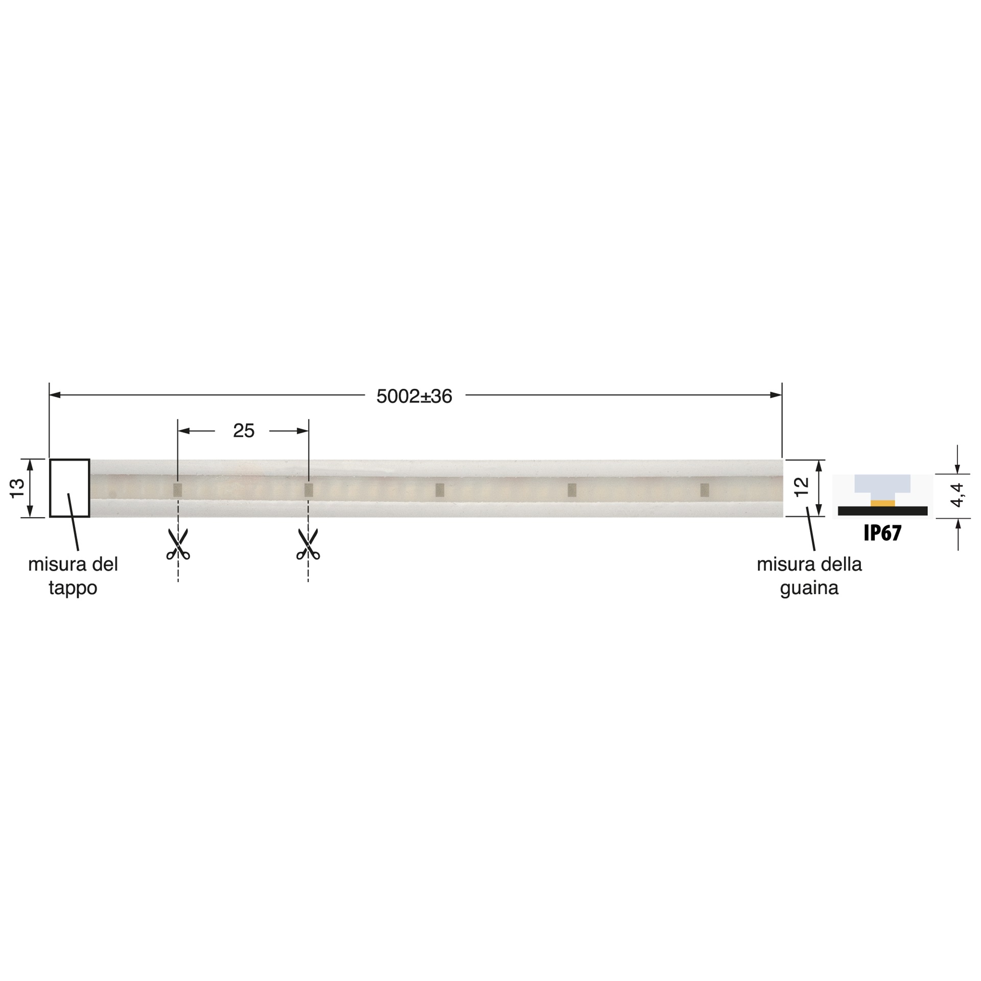 La STRI.LED 9,6W/M BF 24V IP67 CRI90 è una striscia LED di alta qualità, progettata per offrire un'illuminazione efficiente e versatile. Con una potenza di 9,6 watt per metro, questa striscia è ideale per applicazioni in ambienti interni ed esterni, grazie al suo grado di protezione IP67, che la rende resistente all'acqua e alla polvere. La tecnologia CRI90 garantisce un'ottima resa cromatica, rendendo i colori più vividi e naturali.