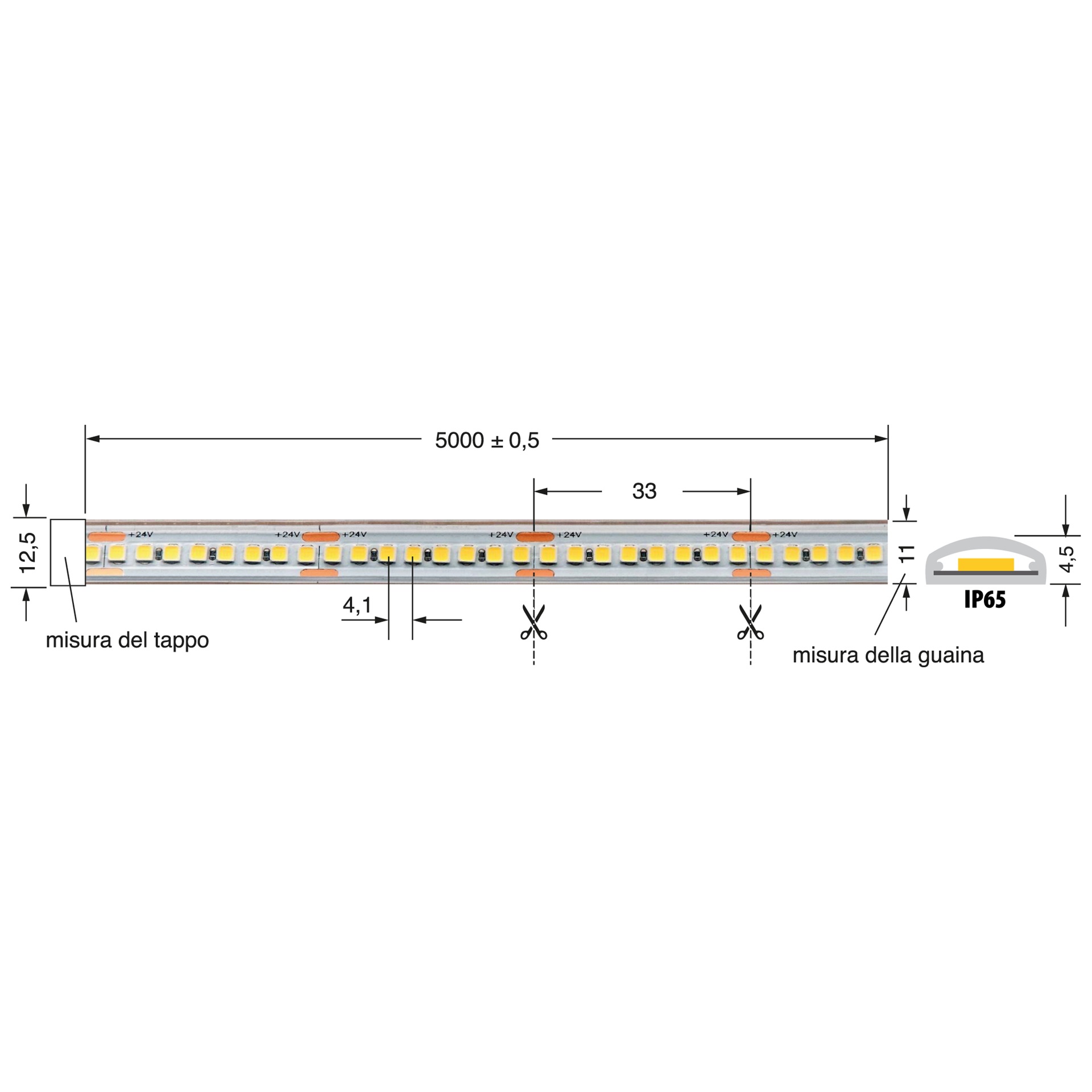 La striscia LED da 13W/m è un prodotto versatile e altamente funzionale, progettata per un utilizzo in ambienti interni ed esterni. Con una tensione di 24V e un grado di protezione IP65, è resistente all'acqua e alla polvere, rendendola ideale per l'illuminazione di giardini, terrazze e spazi commerciali. La sua potenza di 13W per metro garantisce un'illuminazione brillante ed efficiente, contribuendo a creare atmosfere accoglienti e suggestive. Realizzata con materiali di alta qualità, questa striscia LED è facile da installare e può essere tagliata a misura per adattarsi perfettamente a qualsiasi progetto. Scegli questa soluzione per un'illuminazione duratura e di alta qualità, capace di soddisfare le esigenze di ogni ambiente.