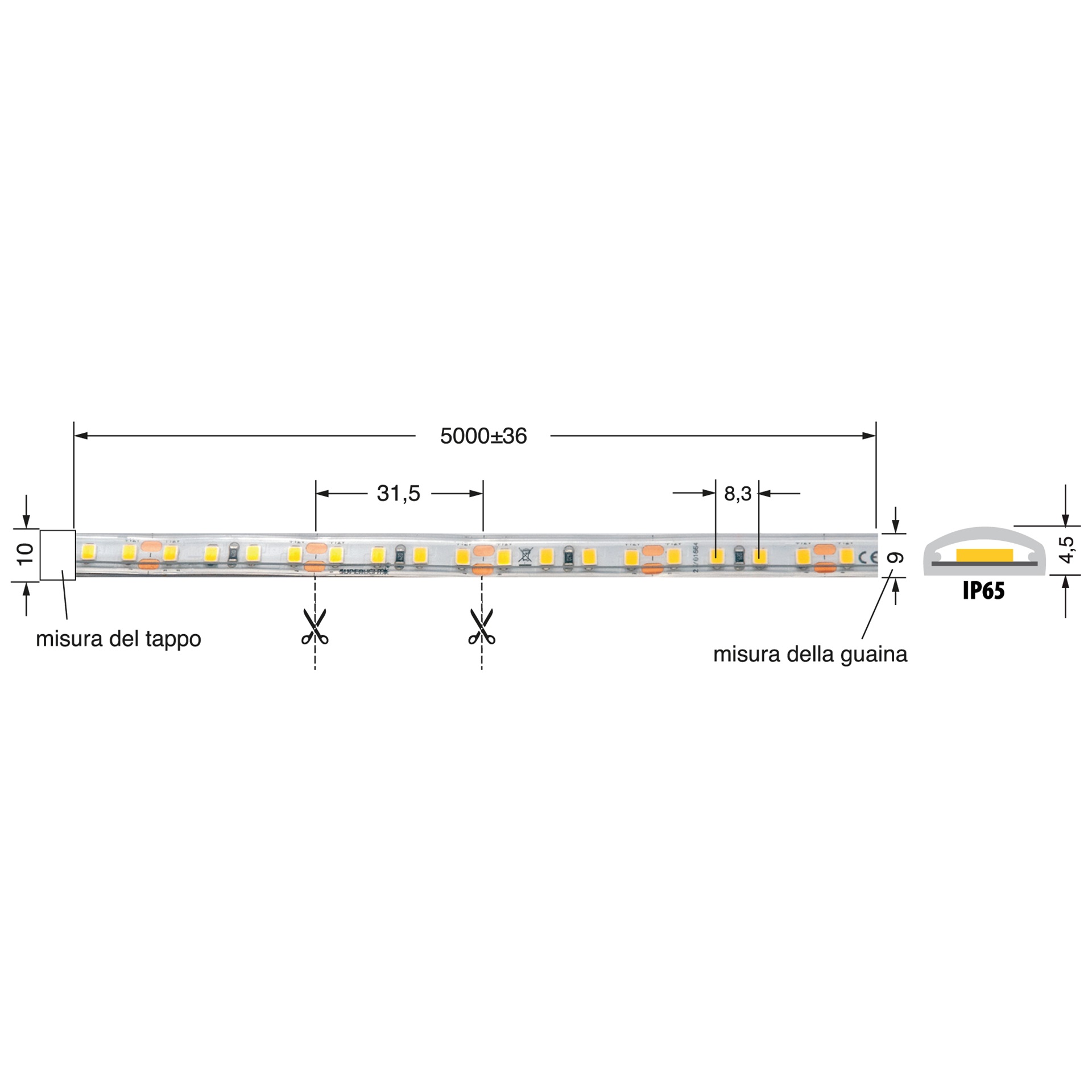 La STRISCIA LED 8W/M BF 12V IP65 è una soluzione d'illuminazione versatile e altamente efficiente, progettata per offrire prestazioni ottimali in ambienti interni ed esterni. Con una potenza di 8W per metro, questa striscia LED garantisce un'illuminazione brillante e uniforme, perfetta per creare atmosfere accoglienti o per applicazioni più funzionali. La tensione di alimentazione di 12V la rende sicura e adatta a una vasta gamma di installazioni.