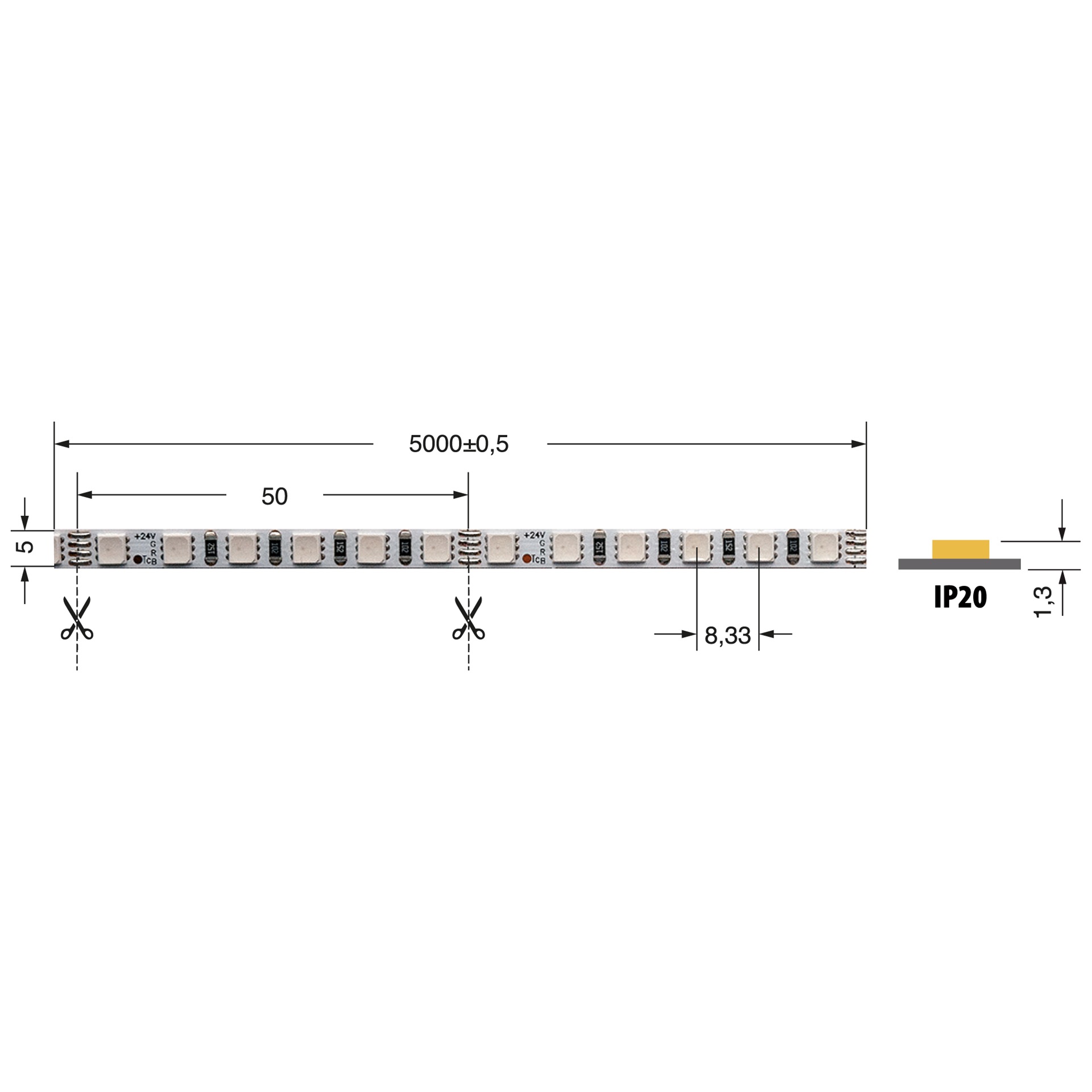 La striscia LED RGB da 8W/m, alimentata a 24V e con grado di protezione IP20, rappresenta una soluzione versatile per l'illuminazione decorativa e funzionale in ambienti interni. Realizzata con materiali di alta qualità, questa striscia LED offre una luminosità intensa e un'ampia gamma di colori, consentendo di creare atmosfere personalizzate in qualsiasi spazio.