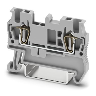 Morsetto passante, tensione nominale: 500 V, corrente nominale: 17,5 A, numero di connessioni: 2, tipo di connessione: Connessione a molla, 1. piano, Sezione di dimensionamento: 1,5 mm², sezione: 0,08 mm² - 1,5 mm², tipo di montaggio: NS 35/7,5, NS 35/15, colore: grigio