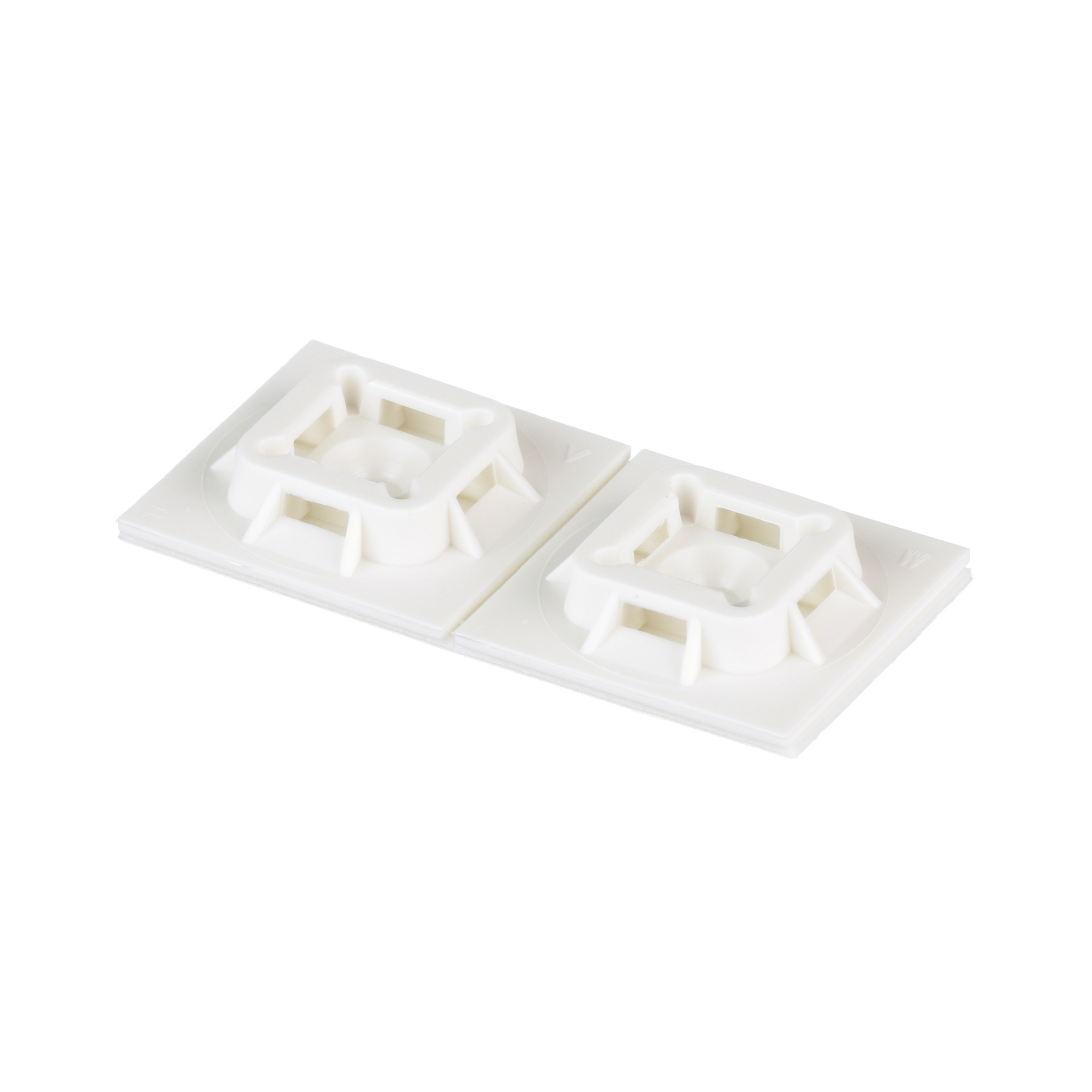 Panduit’s ABM100-A-C 4-way rubber-based adhesive backed cable tie mounts have been designed for fast installation and long-term performance and reliability. They are made of Nylon 6.6. These mounts can be used with miniature, intermediate, and standard cable ties and are intended for use in indoor environments. They are 1” x 1” (25.4mm x 25.4mm), has hole for standard S6 flat head screw, supplied in strips of 2, are white in color and come in packages of 100.
