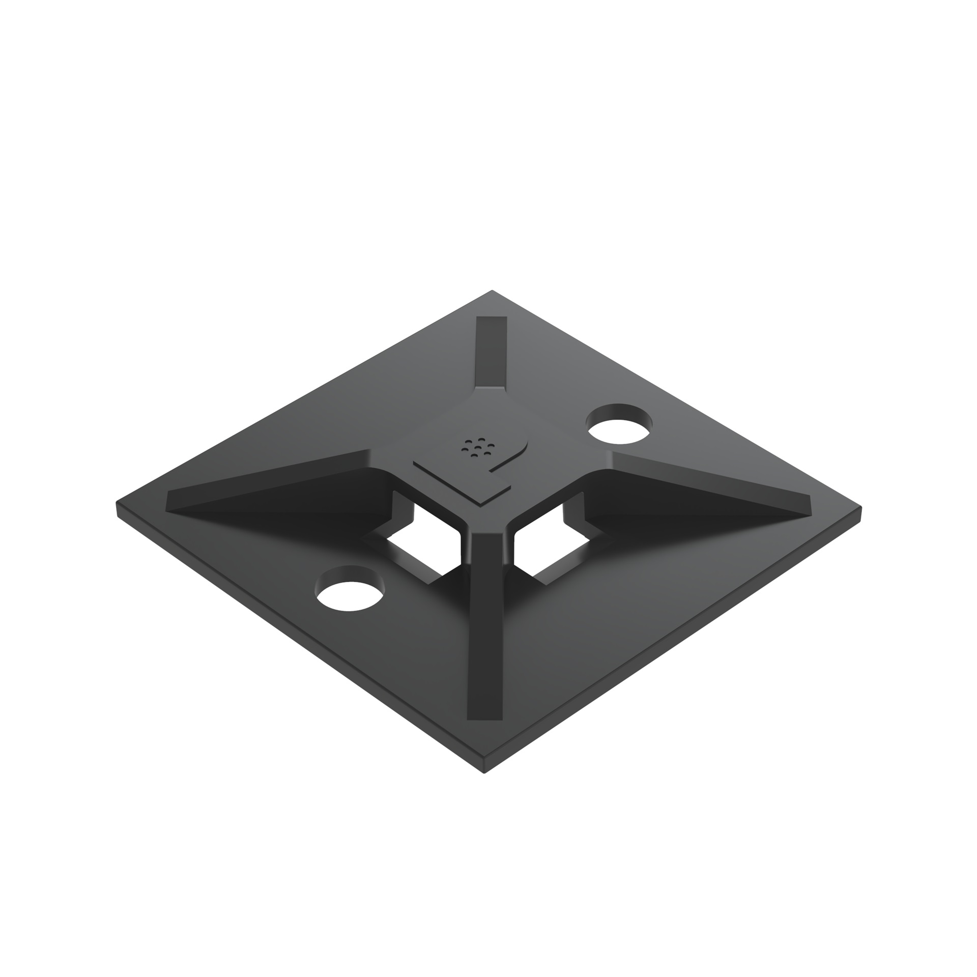 Panduit’s ABM112-A-D20 4-way rubber-based adhesive backed cable tie mounts have been designed for fast installation and long-term performance and reliability. They are made of Nylon 6.6. These mounts can be used with miniature, intermediate, and standard cable ties and are designed for indoor environments. They are 1.12" x 1.12" (28.6mm x 28.6mm), supplied in strips of 2, are black in color and come in packages of 500.
