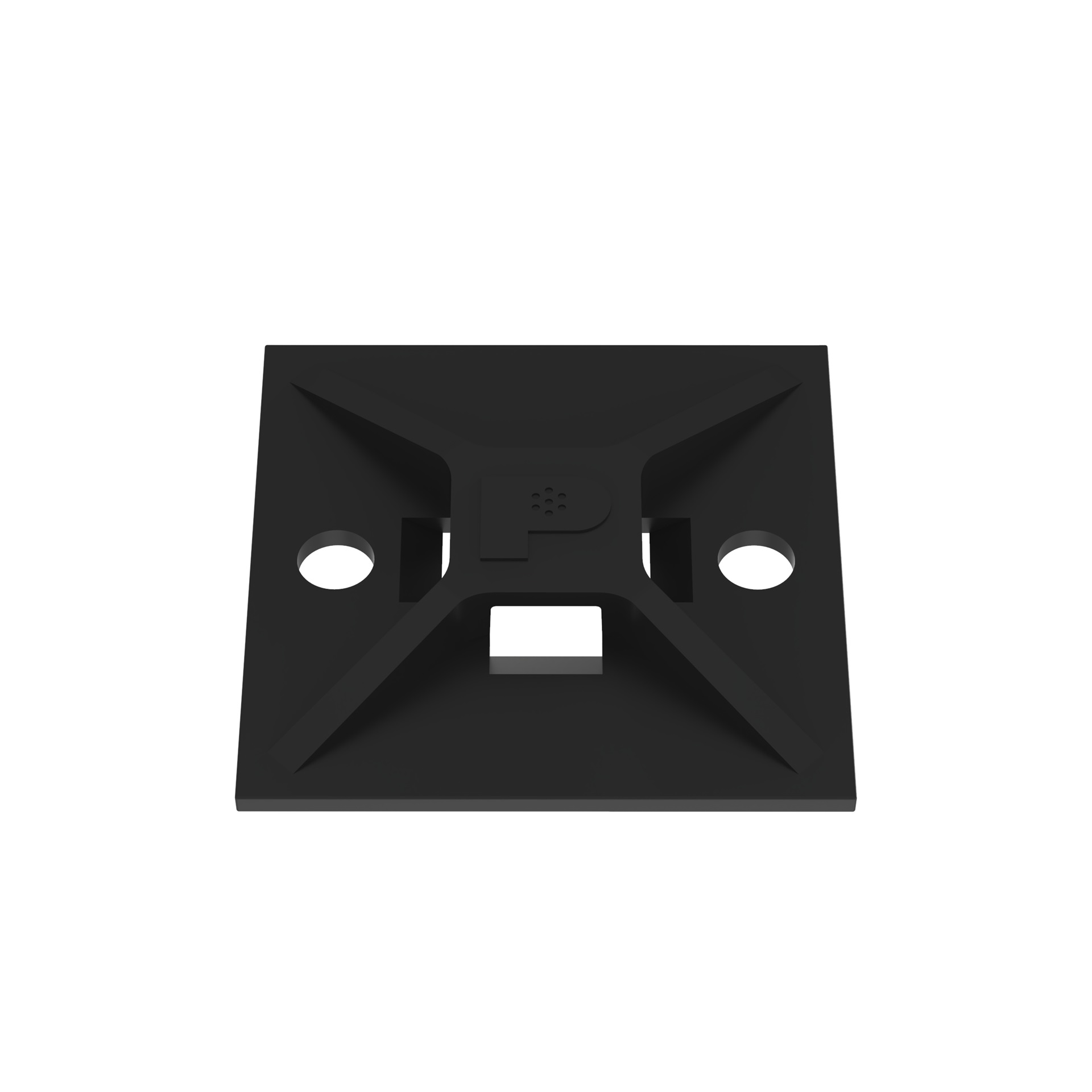 Panduit’s ABM2S-A-C0 4-way rubber-based adhesive backed cable tie mounts have been designed for fast installation and long-term performance and reliability. They are made of Weather Resistant ABS plastic. These mounts can be used with miniature, intermediate, and standard cable ties and are designed for indoor environments. They are 1" x 1" (25.4mm x 25.4mm), supplied in strips of 2, are black in color and come in packages of 100.