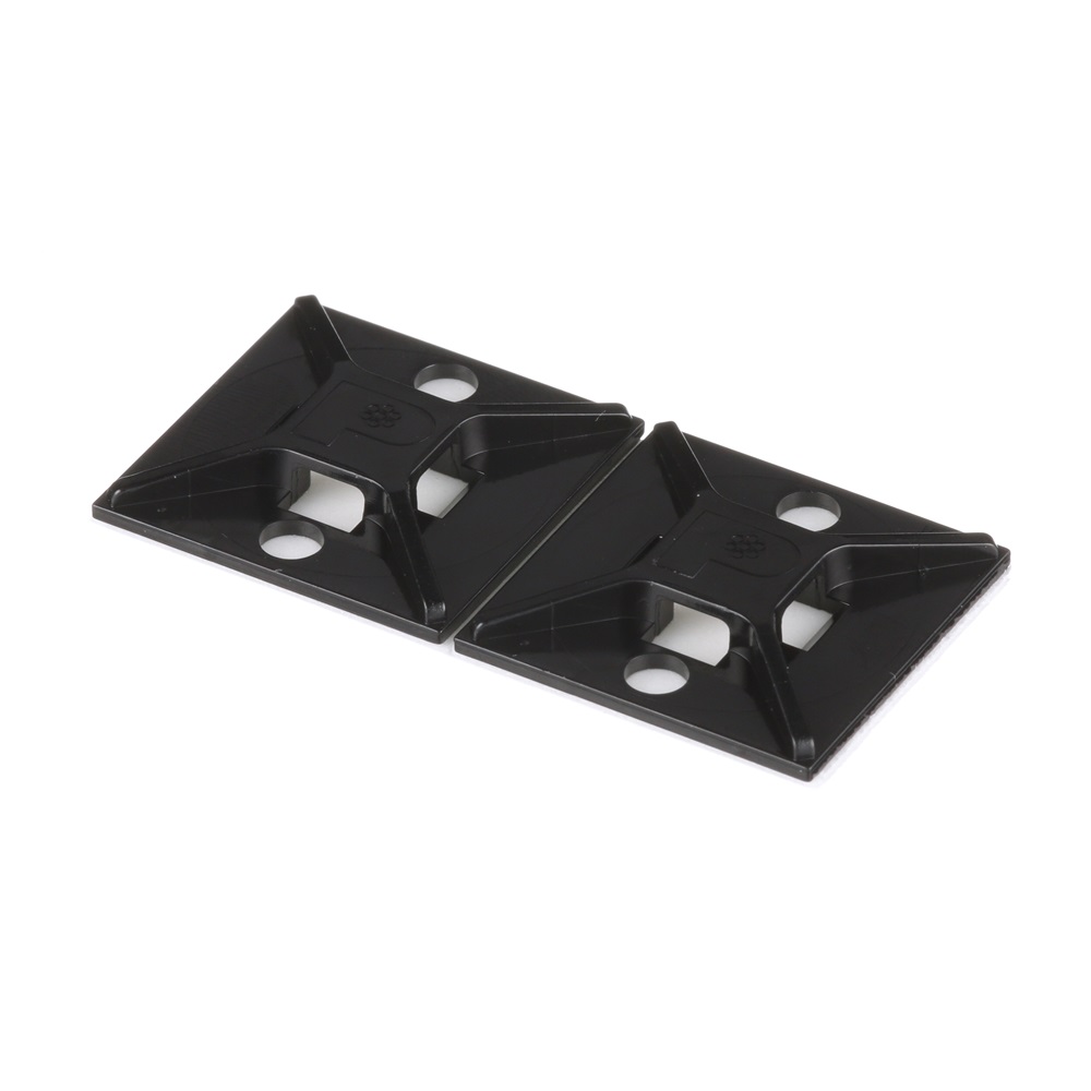 Panduit’s ABM2S-AT-D0 4-way acrylic-based adhesive backed cable tie mounts have been designed for fast installation and long-term performance and reliability. They are made of weather resistant ABS plastic. These mounts can be used with miniature, intermediate, and standard cable ties and are designed for outdoor, high-temperature environments. They are 1" x 1" (25.4mm x 25.4mm), supplied in strips of 2, are black in color and come in packages of 500.