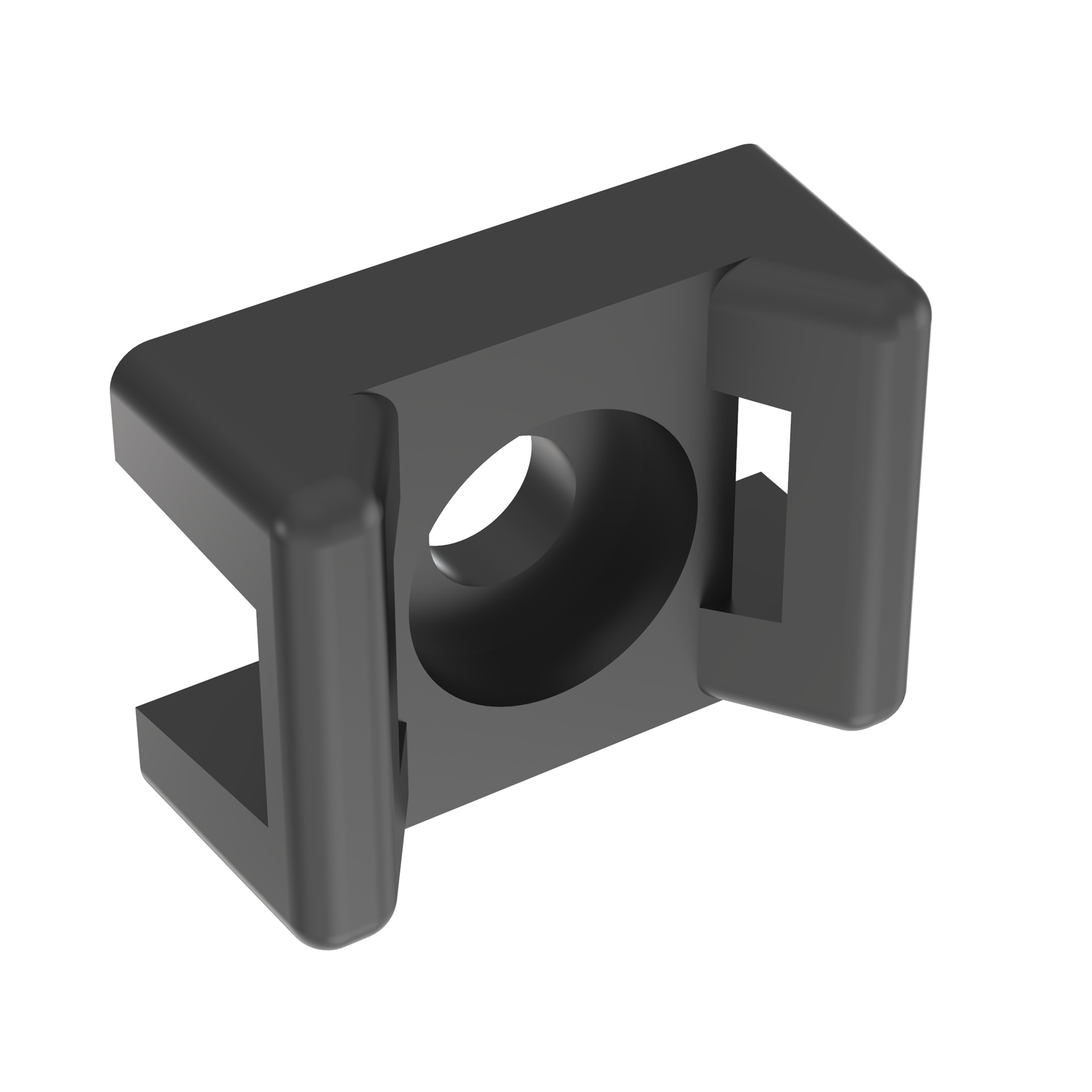 Panduit TM3S10-M0 Screw Applied Cable Tie Mounts offer a through hole in the mount in which a screw or rivet can be secured, this offers maximum stability for cable bundles. Install with a #10 (M5) screw. For outdoor use and are suitable for miniature, intermediate and standard cross-section cable ties. Made of Weather Resistant Nylon 6.6. They are 0.61" (15.5 mm) wide, are black in color and come in packages of 1000.