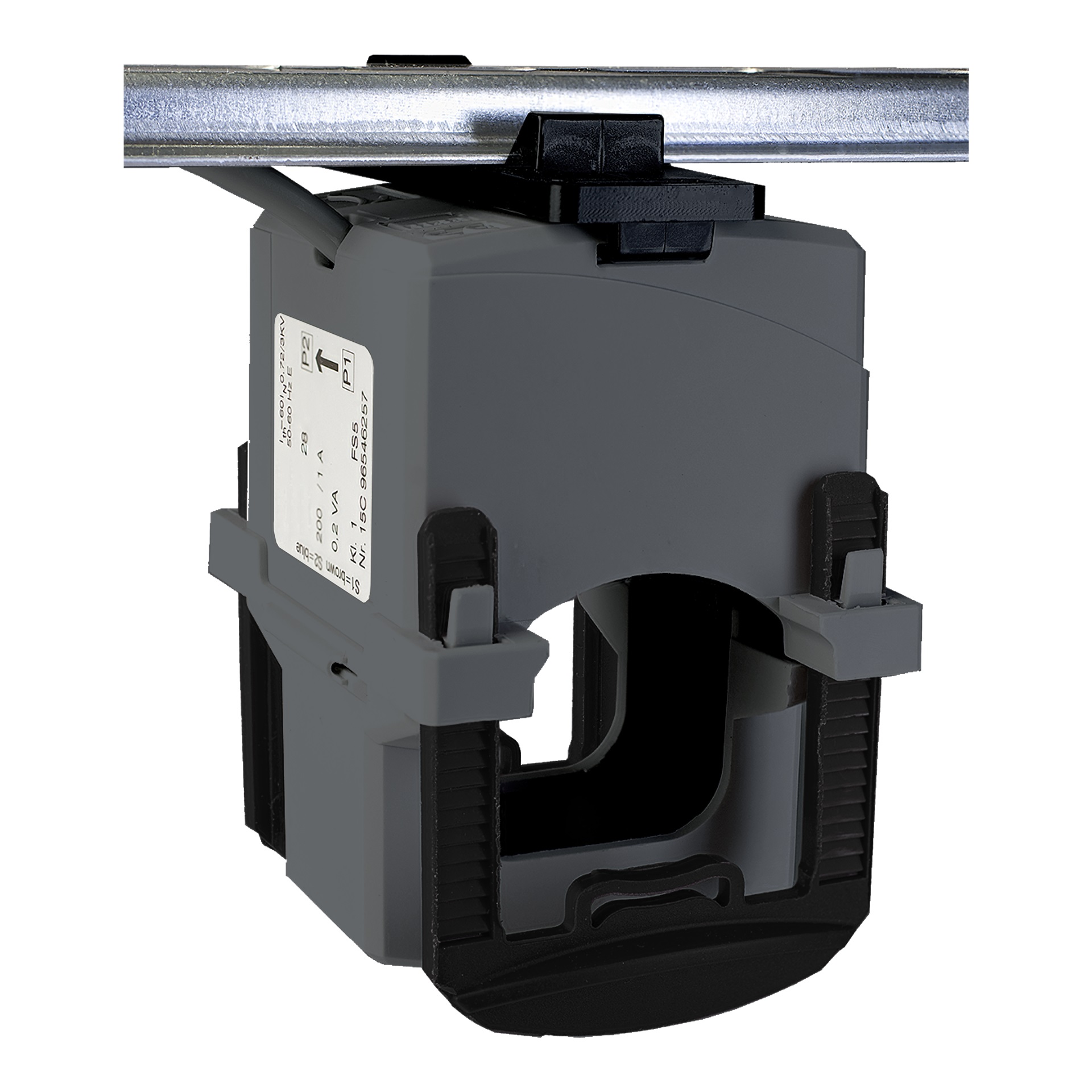 Il trasformatore di corrente, standard per cavo, ha una corrente nominale di linea di 300 A e una corrente nominale secondaria di 5 A. Questo trasformatore di corrente consente l'impiego di un cavo dal diametro esterno massimo di 27 mm. Carico e classe di precisione: per classe 1 potenza massima 1,5 VA.