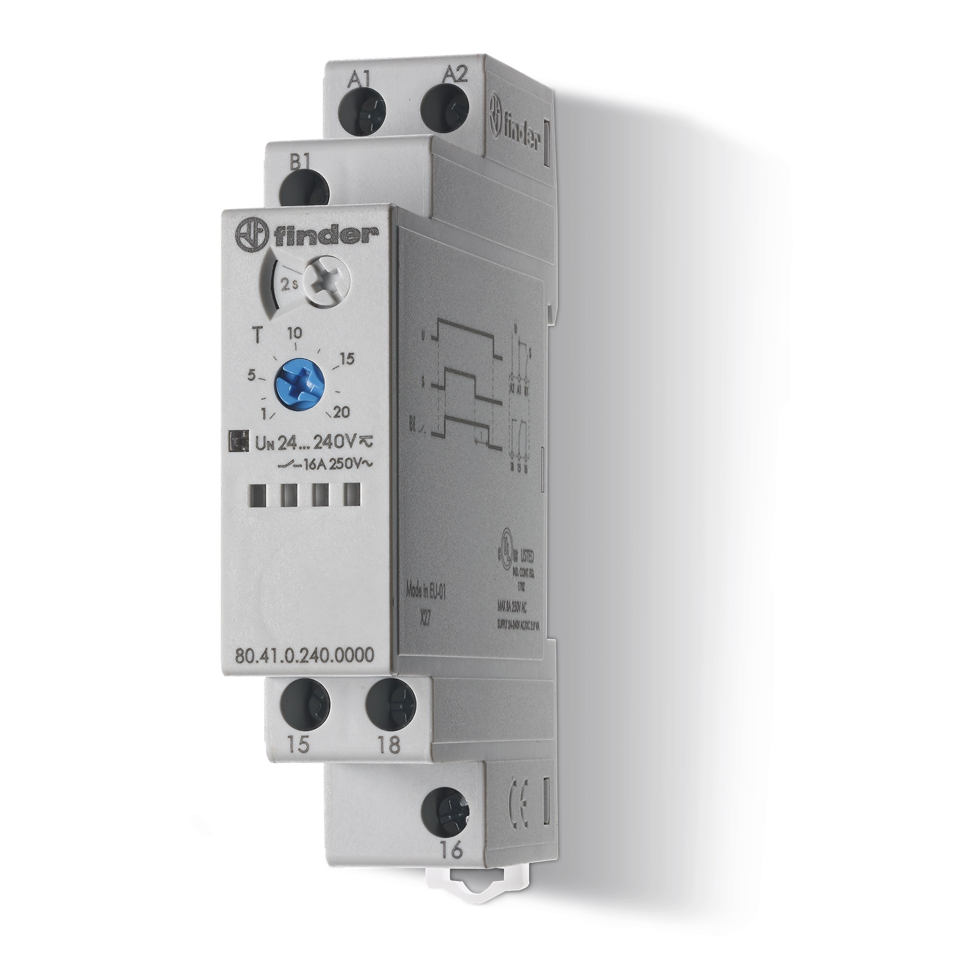Temporizzatore modulare monofunzione,ritardo alla disinserzione con segnale,multitensione N°contatti: 1 Configurazione contatti: CO Materiale contatti: AgNi (A): 16 A. Alimentazione: AC/DC Volt AC: 240 V. Volt DC: 240 V. adatto per montaggio frontale: sì con base a innesto: no telecomando possibile: no adatto solo per telecomando: no funzione lampeggiante con pausa iniziale, tempo fisso: no funzione lampeggiante con impulso iniziale, tempo fisso: no con uscita semiconduttore: sì funzione ritardata all'eccitazione: no funzione passante con ritardo all'eccitazione: no funzione stella/triangolo: no intervallo di tempo: da 0.1 a 86400 s. funzione ritardata alla diseccitazione: no funzione passante con ritardo alla diseccitazione: sì Collegamento elettrico: raccordo a vite adatto per montaggio su guida a cappello: sì Grado di protezione: IP20
