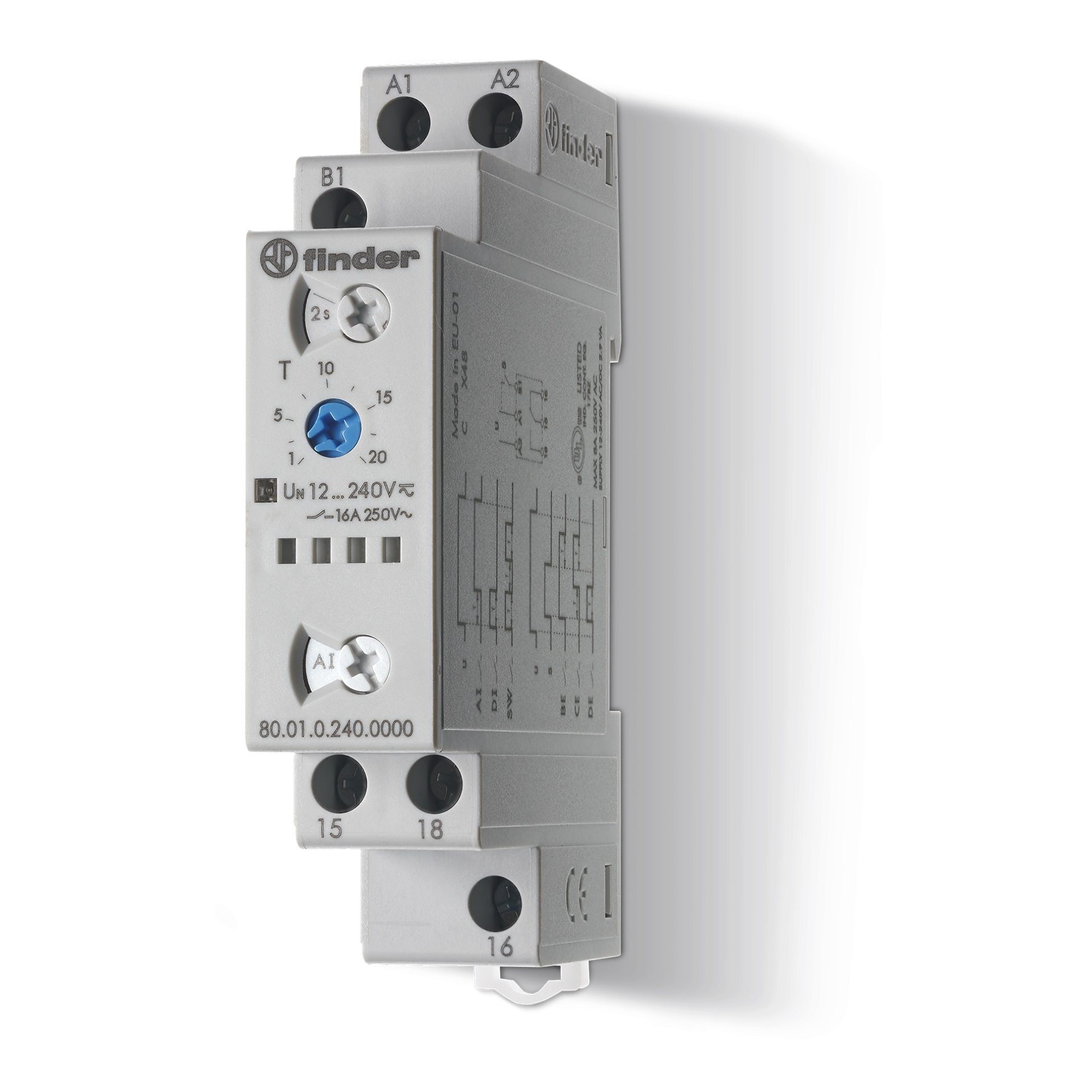 Temporizzatore modulare multifunzione e multitensione N°contatti: 1 Configurazione contatti: CO Materiale contatti: AgNi (A): 16 A. Alimentazione: AC/DC Volt AC: da 12 a 240 V. Volt DC: da 12 a 240 V. adatto per montaggio frontale: no con base a innesto: no telecomando possibile: no adatto solo per telecomando: no funzione lampeggiante con pausa iniziale, tempo fisso: no funzione lampeggiante con impulso iniziale, tempo fisso: no con uscita semiconduttore: sì funzione ritardata all'eccitazione: sì funzione passante con ritardo all'eccitazione: sì funzione stella/triangolo: no intervallo di tempo: da 0.1 a 86400 s. funzione ritardata alla diseccitazione: sì funzione passante con ritardo alla diseccitazione: sì Collegamento elettrico: raccordo a vite adatto per montaggio su guida a cappello: sì Grado di protezione: IP20