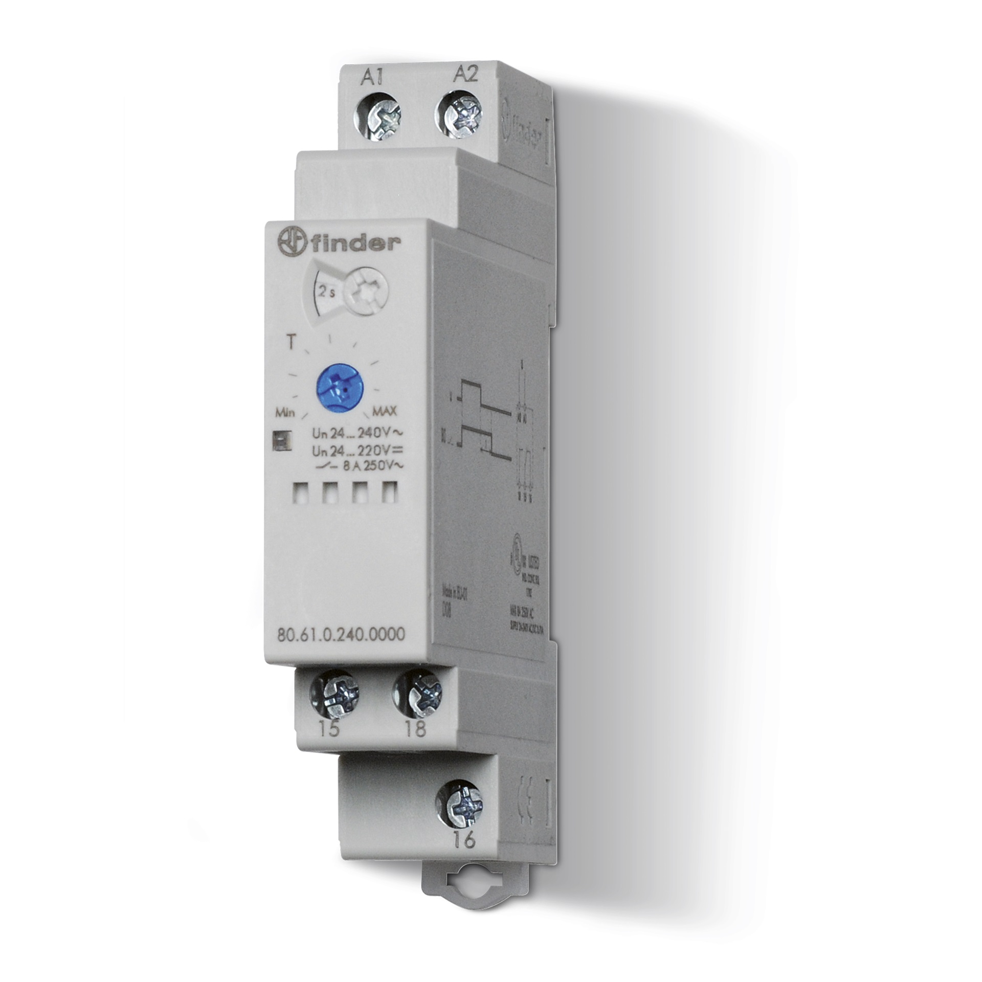Temporizzatore modulare monofunzione,ritardo alla disinserzione,multitensione N°contatti: 1 Configurazione contatti: CO (A): 8 A. Alimentazione: AC/DC Volt AC: 240 V. Volt DC: 240 V. adatto per montaggio frontale: sì con base a innesto: no telecomando possibile: no adatto solo per telecomando: no funzione lampeggiante con pausa iniziale, tempo fisso: no funzione lampeggiante con impulso iniziale, tempo fisso: sì con uscita semiconduttore: no funzione ritardata all'eccitazione: sì funzione passante con ritardo all'eccitazione: sì funzione stella/triangolo: no intervallo di tempo: da 0.05 a 180 s. funzione ritardata alla diseccitazione: sì funzione passante con ritardo alla diseccitazione: sì Collegamento elettrico: raccordo a vite adatto per montaggio su guida a cappello: sì Grado di protezione: IP20