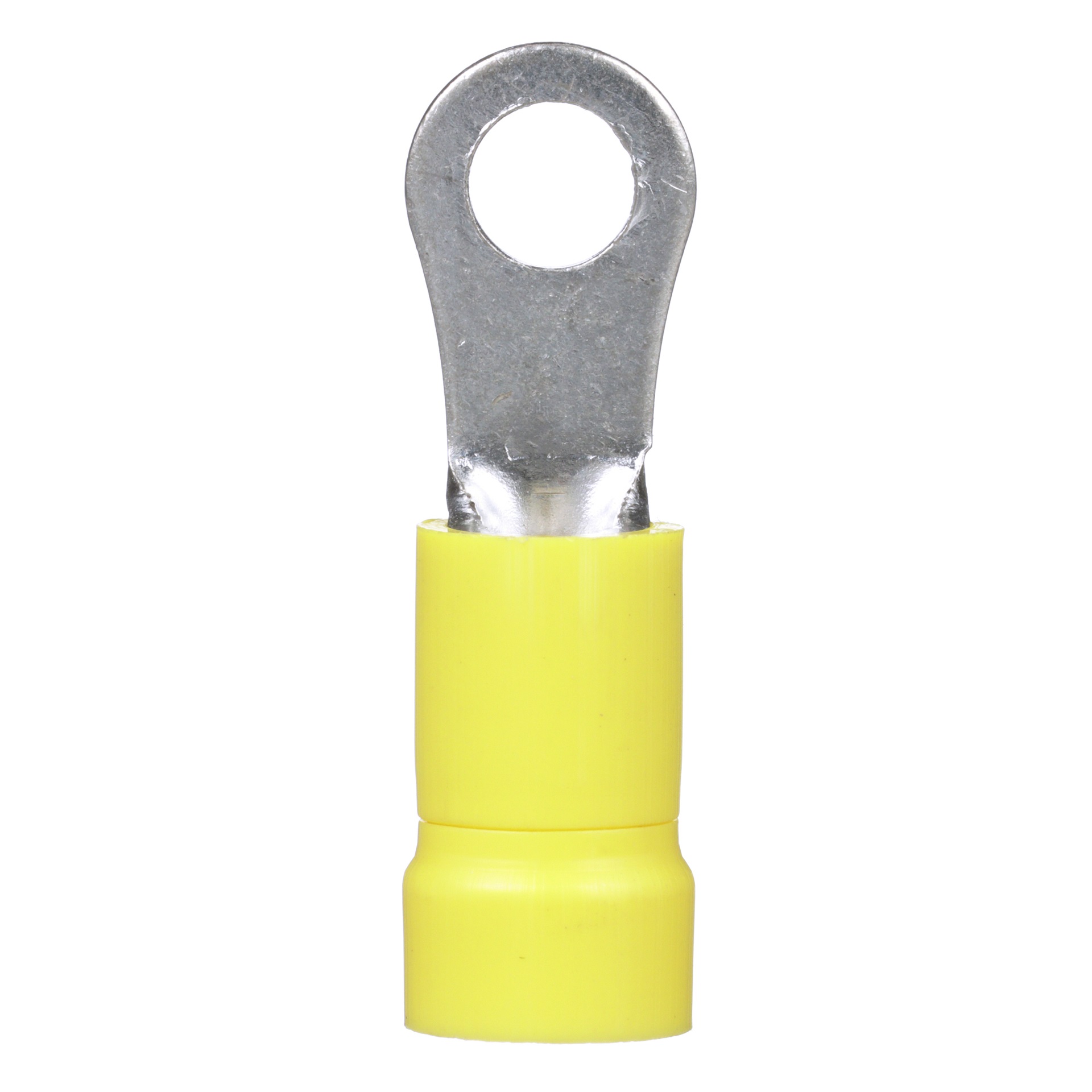 The PV10-8R-L Pan-Term® Terminal is a vinyl insulated, ring terminal. Brazed seam protects terminal barrel from splitting during the crimp process. Internal barrel serrations assure good wire contact and maximum tensile strength.