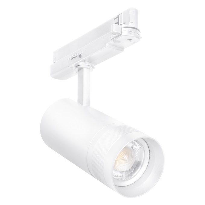 Tracklight Spot trifase dimmerabile con lente zoom meccanica e interruttore CCT. Caratteristiche del prodotto: Funzione Multi Color: 3000 K e 4000 K. Obiettivo zoom meccanico con angolo di fascio da 21° a 50°. Dimmerabile (3% - 100%) tramite potenziometro direttamente su ogni apparecchio. Indice di resa cromatica CRI 90. Variazione cromatica iniziale: ≤ 3 SDCM. Angolo di rotazione: 350°, angolo di inclinazione: 90°. Alloggiamento in alluminio pressofuso resistente. Disponibile in bianco opaco (come RAL9003), nero opaco (come RAL9005). Efficienza: fino a 120 lm/W. Vantaggi del prodotto: Faretto a binario trifase dimmerabile con lente zoom meccanica. Nessuna distrazione dagli oggetti illuminati grazie al design ridotto. Luce a ridotto scintillio grazie ad uno speciale alimentatore elettronico. Aree di applicazione: Sostituzione diretta per apparecchi che usano lampade HID. Illuminazione d'accento. Gallerie, musei. Negozi, salottini prova, vetrine. Hotel, ristoranti. Consigli per la sicurezza: Tutti i collegamenti elettrici devono essere effettuati da personale qualificato.. Attenzione, rischio di scosse elettriche.. Prodotto in classe di protezione I. Tutte le parti metalliche dell'involucro elettricamente conduttive che possono assorbire tensione durante il funzionamento o durante la manutenzione in caso di guasto devono essere collegate in modo continuo al conduttore di protezione di terra..