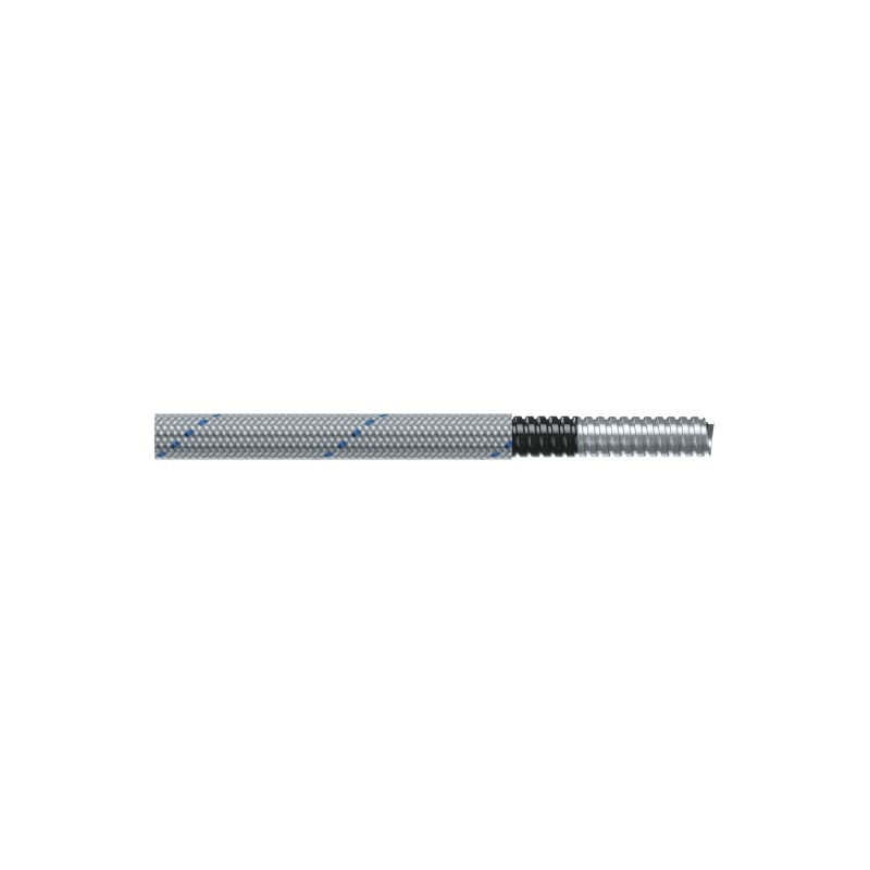 Guaina metallica trecciata che garantisce un'elevata protezione contro roditori, scorie taglienti, trucioli roventi e in condizioni gravose come l'installazione su sistemi frenanti, apparecchiature di saldatura e macchine di pressofusione. Soddisfa una vasta area di applicazioni, che comprendono l'impiantistica industriale, l'installazione a bordo macchina e le costruzioni navali. Guaina flessibile in acciaio zincato a semplice aggraffatura con rivestimento esterno in resina di polivinile aspirato e successivamente rivestita con treccia di fili in acciaio zincato. Buona resistenza meccanica (compressione/impatto). Buona resistenza alla temperatura. Ottima resistenza alla abrasione e al taglio. Compatibile con l'intera gamma dei raccordi CM, con i quali si ottiene un grado di protezione IP67.