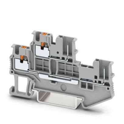 Morsetto a due piani, Corrente e tensione sono determinate dalla spina impiegata., tensione nominale: 500 V, corrente nominale: 16 A, tipo di connessione: Push-in / attacco connettore, 1. e 2. piano, Sezione di dimensionamento: 1,5 mm², sezione: 0,14 mm² - 1,5 mm², tipo di montaggio: NS 35/7,5, NS 35/15, colore: grigio