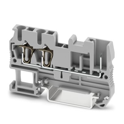 Morsetto passante, tensione nominale: 500 V, corrente nominale: 24 A, numero di connessioni: 3, numero poli: 1, tipo di connessione: Connessione a molla/a innesto, 1. Piano attacco sinistra, Sezione di dimensionamento: 2,5 mm², sezione: 0,08 mm² - 4 mm², 1. piano, collegamento a destra, tipo di montaggio: NS 35/7,5, NS 35/15, colore: grigio