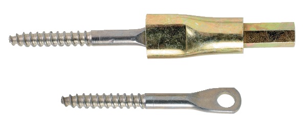 Vite di sospensione per calcestruzzo, in acciaio nichelato (x 50). Senza Tassello. Per sospensione in calcestruzzo e legno tramite gancio ad ''S'', cavo, cavetto, catena, catenella. Strumento di posa incorporato. Foratura Ø 5 x 45 mm.